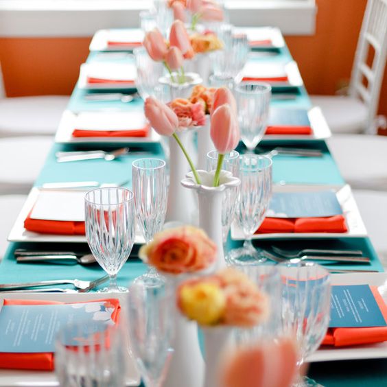 Por ser uma cor quente, faz uma maravilhosa combinação com tons de azul, principalmente o turquesa!
