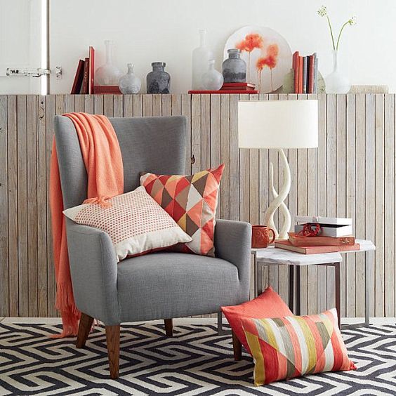 E até mesmo com o verde ela pode ficar linda! O “truque” para combinar o living coral é, na verdade, combiná-lo com um contraste – cores sóbrias e frias são as ideais, pois quebram um pouco do calor transmitido pelo coral e ajudam a equilibrar o ambiente!