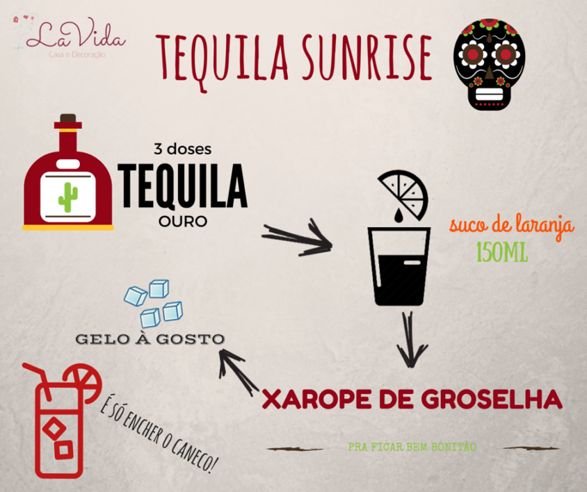A origem do drink tem diversas versões, uma delas inclusive creditando Mick Jagger, o vocalista do Rolling Stones, como seu criador. Embora a origem seja confusa, o nome do drink é bem explicativo: o “Sunrise” do nome – que significa Nascer do Sol, em português – se dá ao fato que a mistura dos ingredientes cria um lindo degradê em cores quentes, lembrando no nascer do sol. Legal, né?