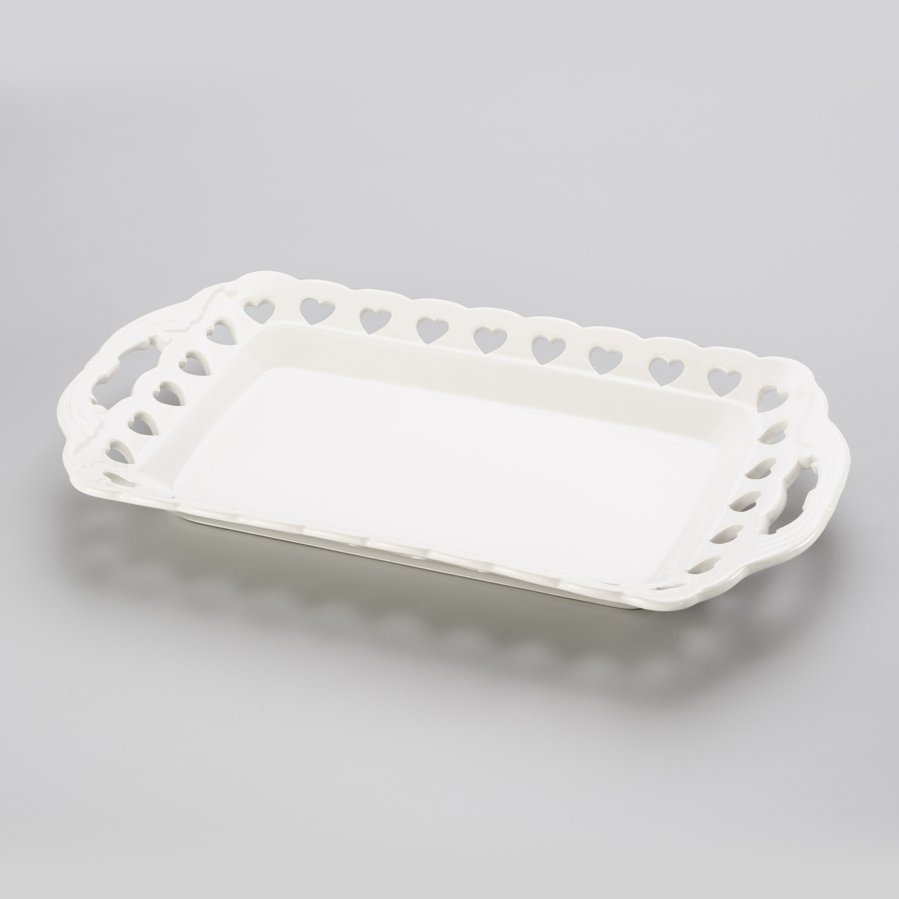 Linda bandeja em porcelana, trabalhada em renda de coração. Maravilhosa!