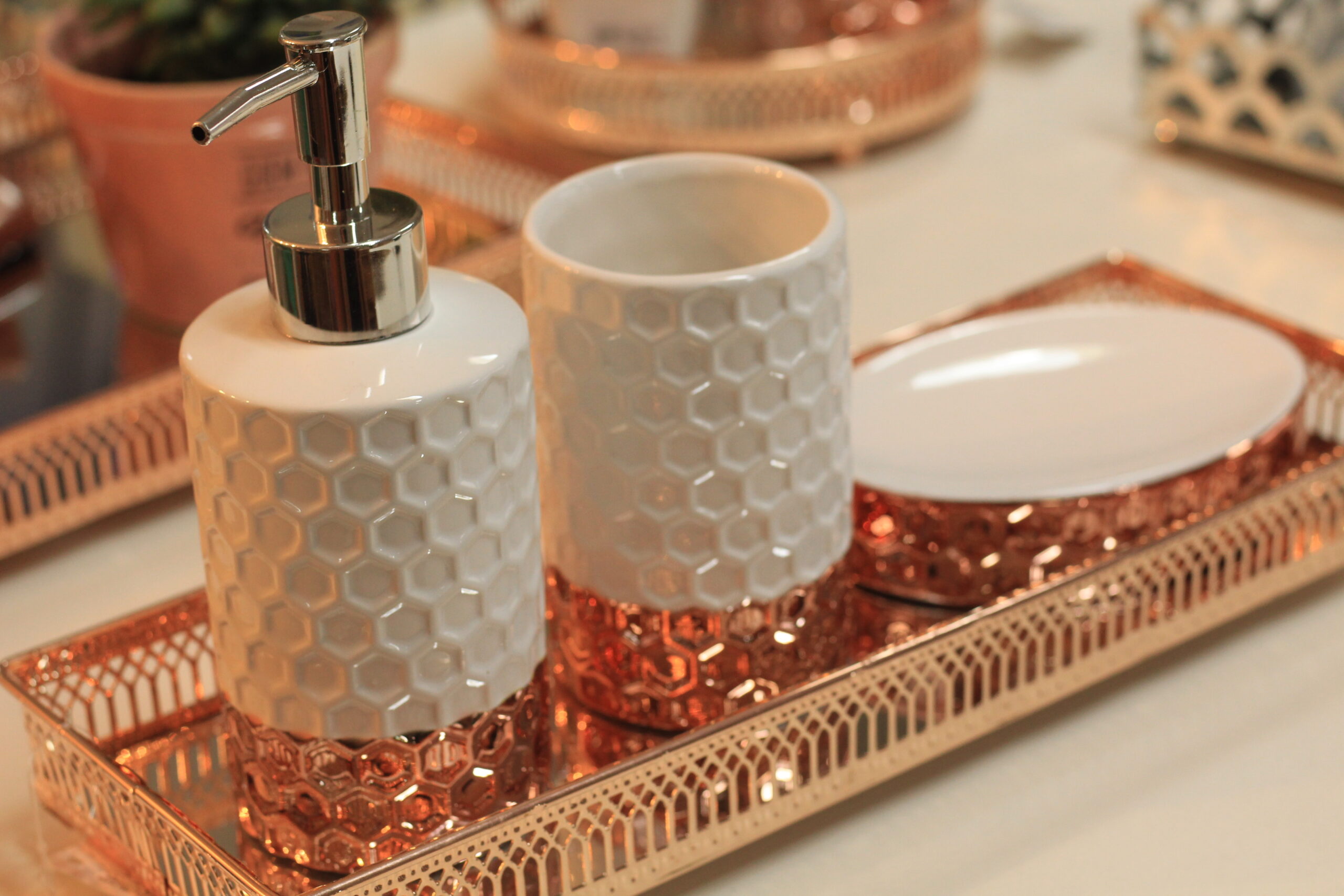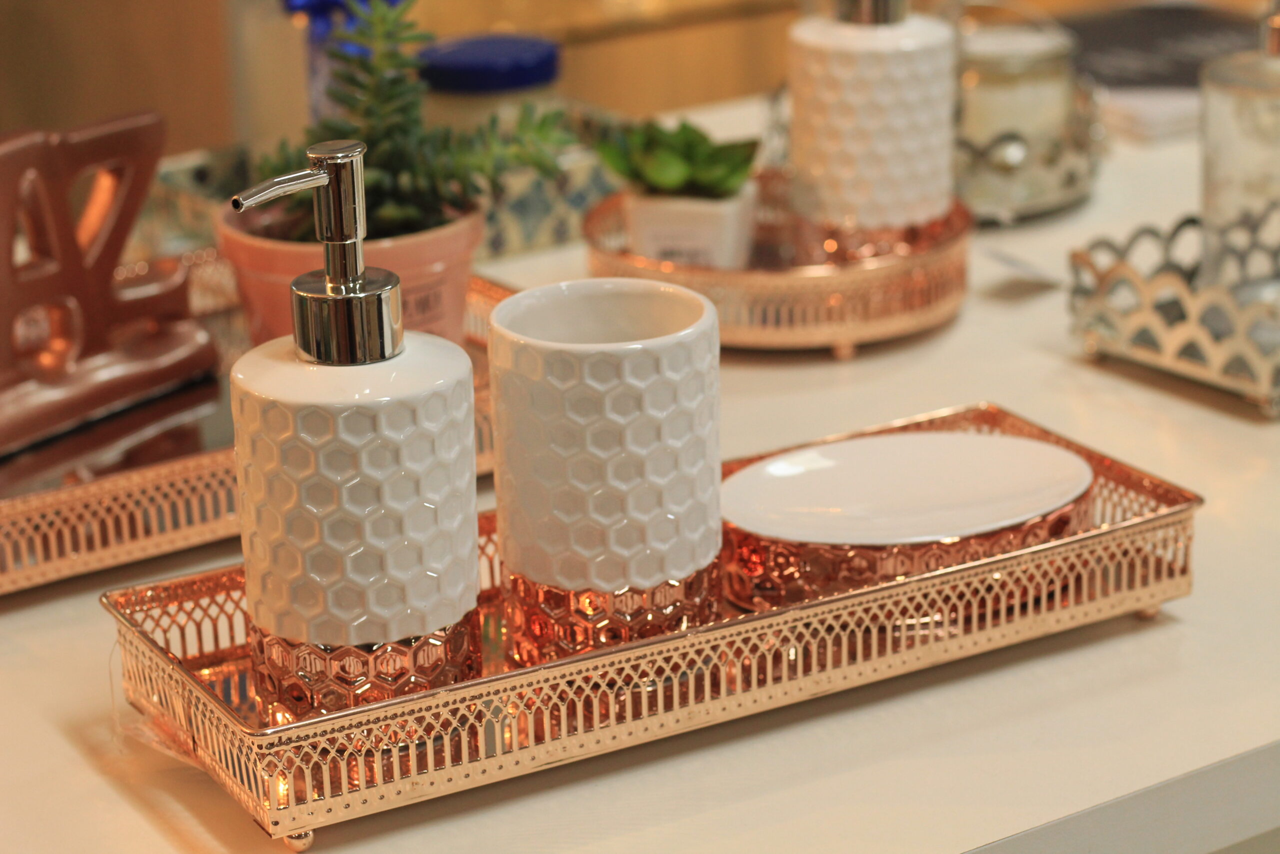 Bandeja espelhada em metal na cor rose gold, simplesmente linda!