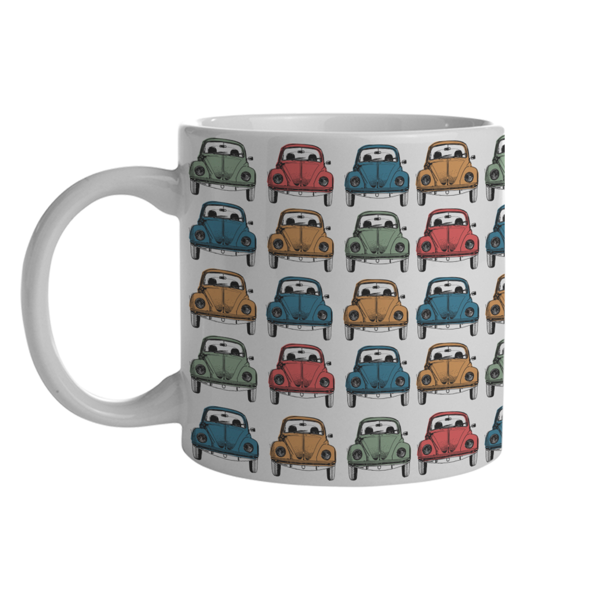 Essa é para os apaixonados pelo clássico: caneca em cerâmica com temática de fuscas – em diversas cores! – e capacidade para 300ml.