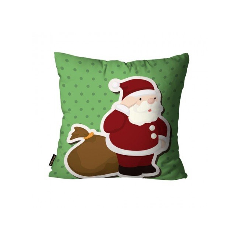 Capa para almofada estampada em tecido poliéster, com estampa super fofa de papai noel.