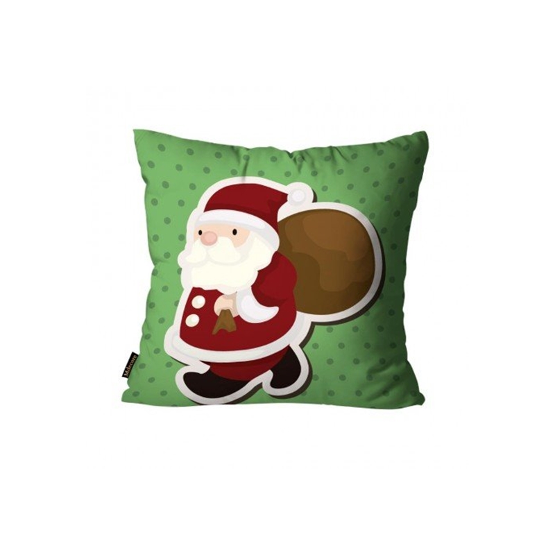 Capa para almofada estampada em tecido poliéster, com estampa super fofa de papai noel.
