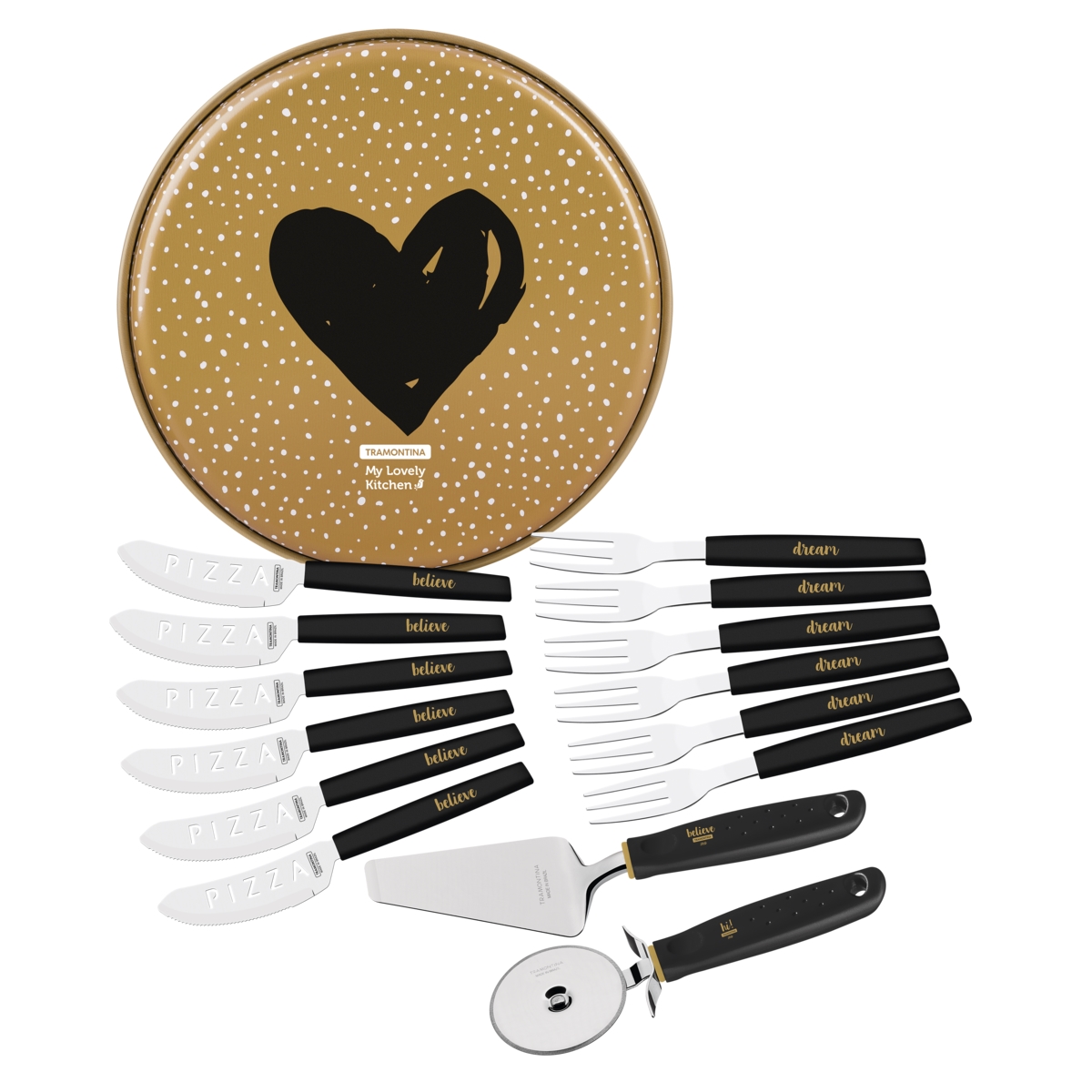 Kit para pizza da linha My Lovely Kitchen, da Tramontina. Contém 15 peças cheias de amor e carinho!