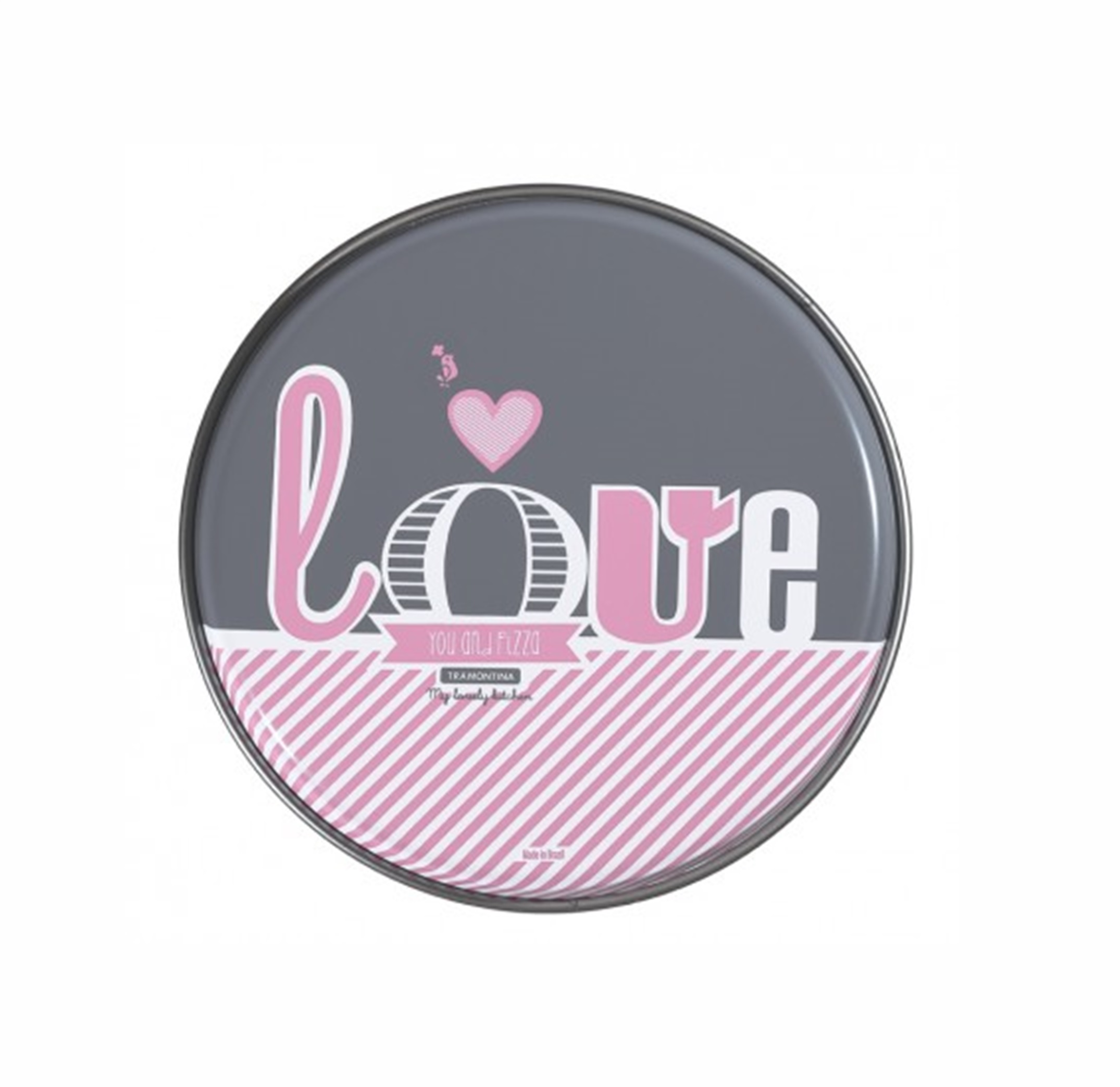 Fôrma para pizza em alumínio super fofa da linha My Lovely Kitchen, da Tramontina. Tem 30 cm de diâmetro. Linda e super útil!