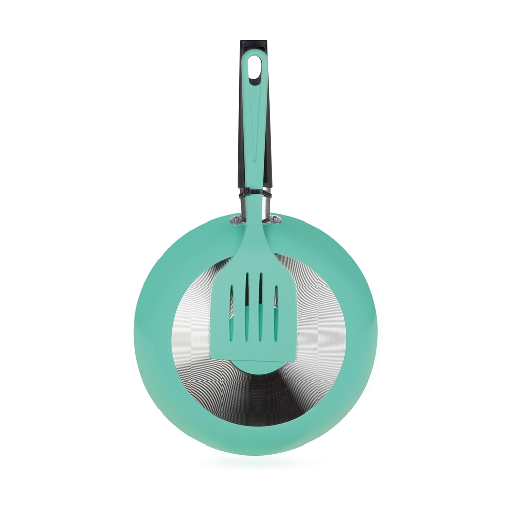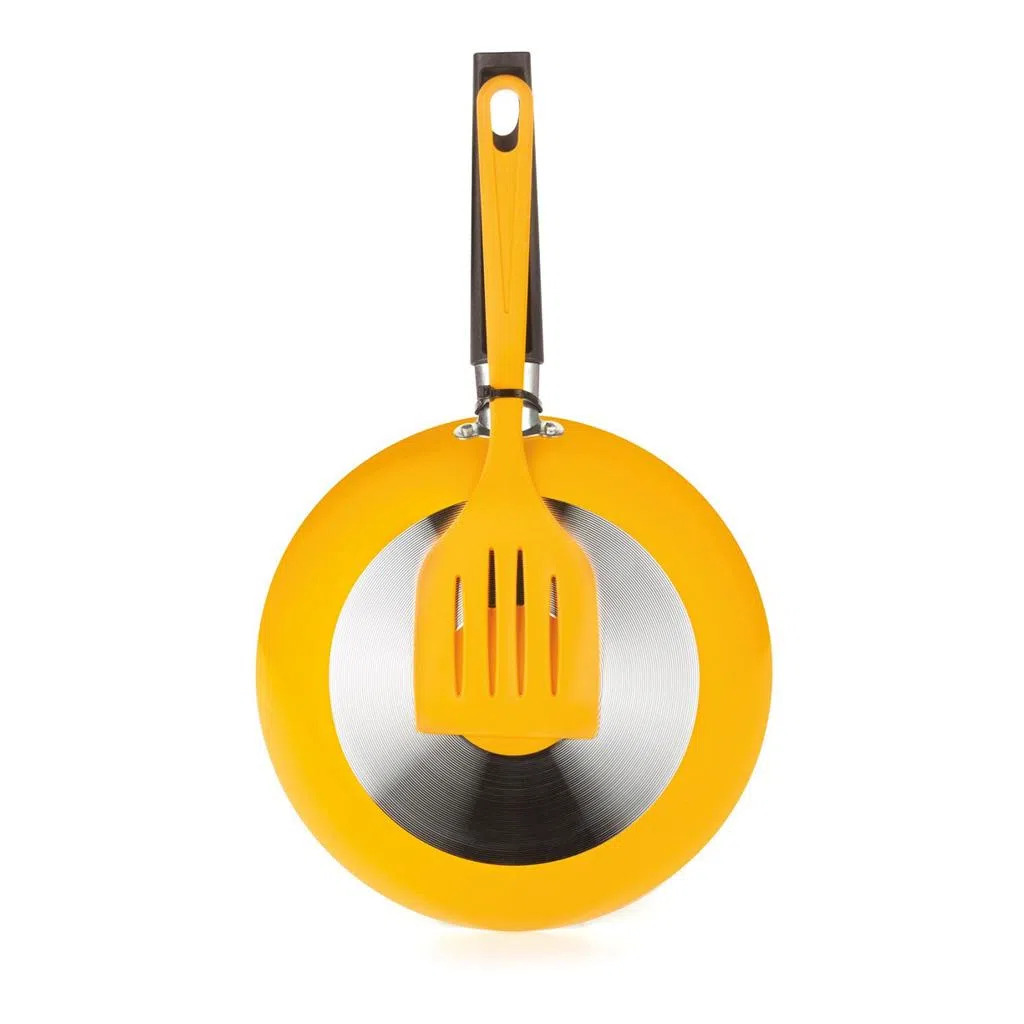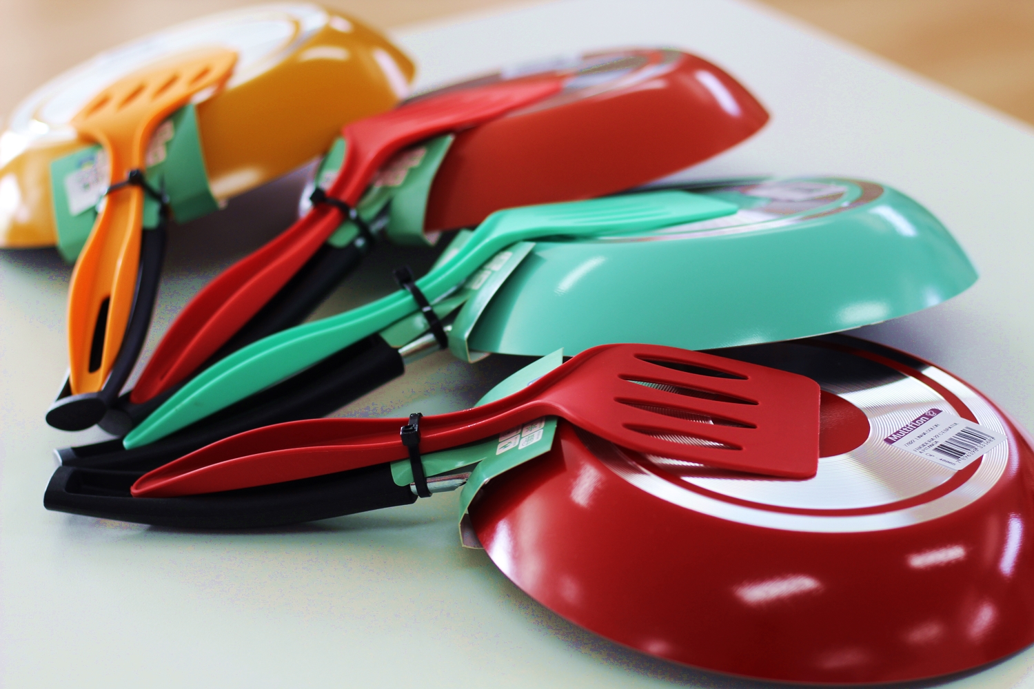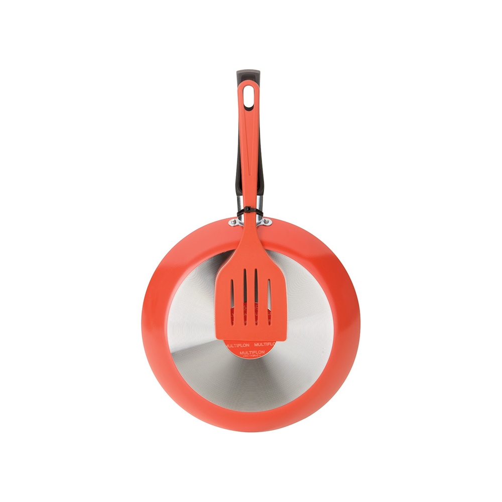 Kit de frigideira e espátula coloridas, da marca Multiflon!