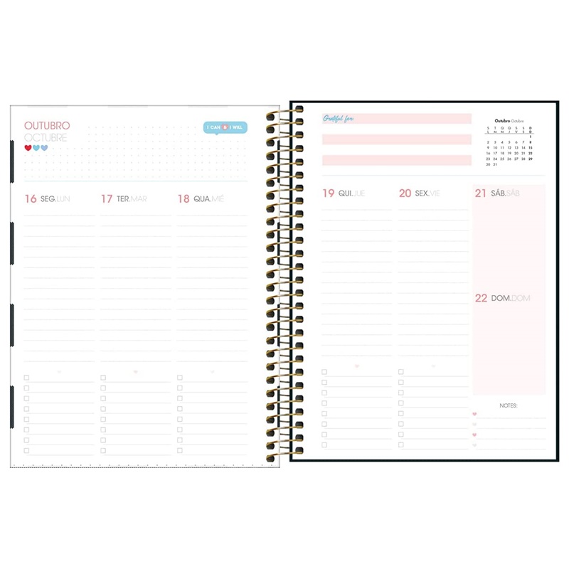O Planner Espiral tem tamanho 17,7 x 24 cm, além de ser linnndo!