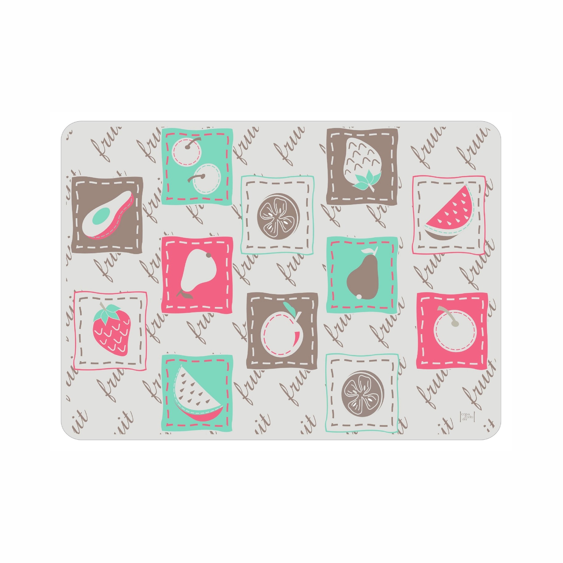 Suplá com temática fofa de frutas! Tem as medidas de 29x42cm.