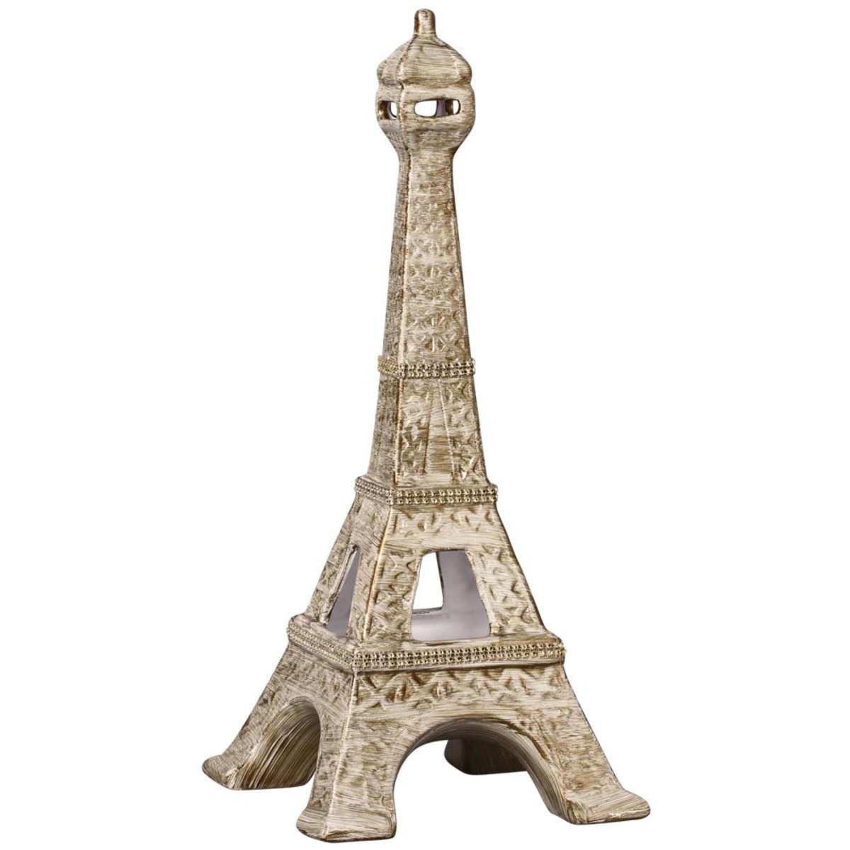Torre eiffel em cerâmica na cor dourada com branco, com aplicação de strass.