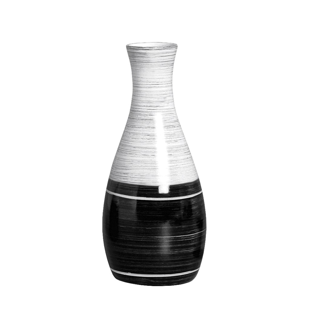 Vaso em cerâmica em preto e branco, com detalhes riscados. Super luxuoso!