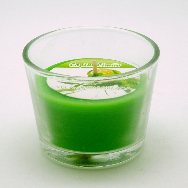 Vela em copo com aroma de capim limão.