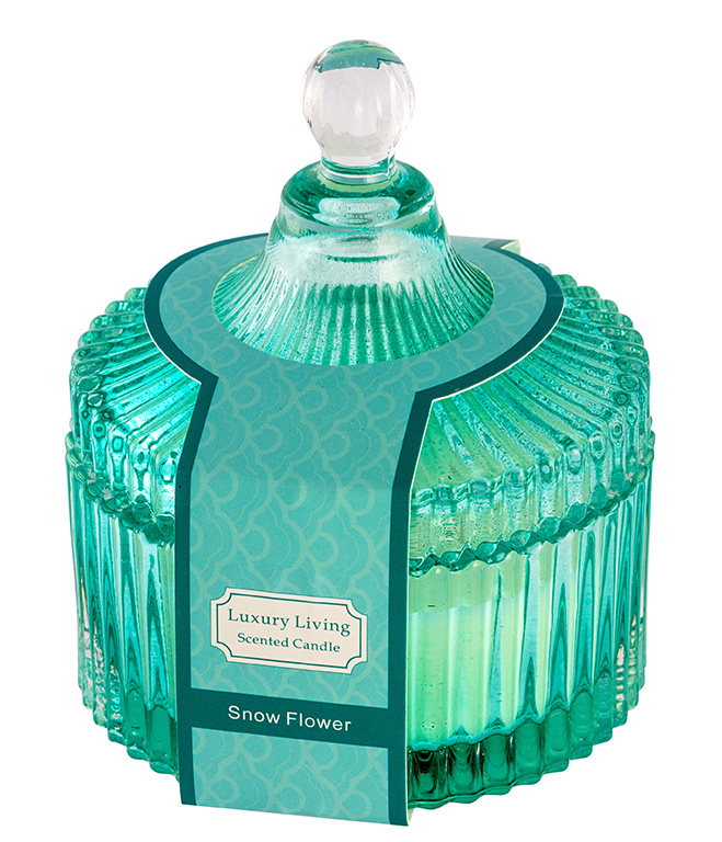 Vela em pote de vidro azul, linda e super luxuosa! Tem o aroma Snow Flower.